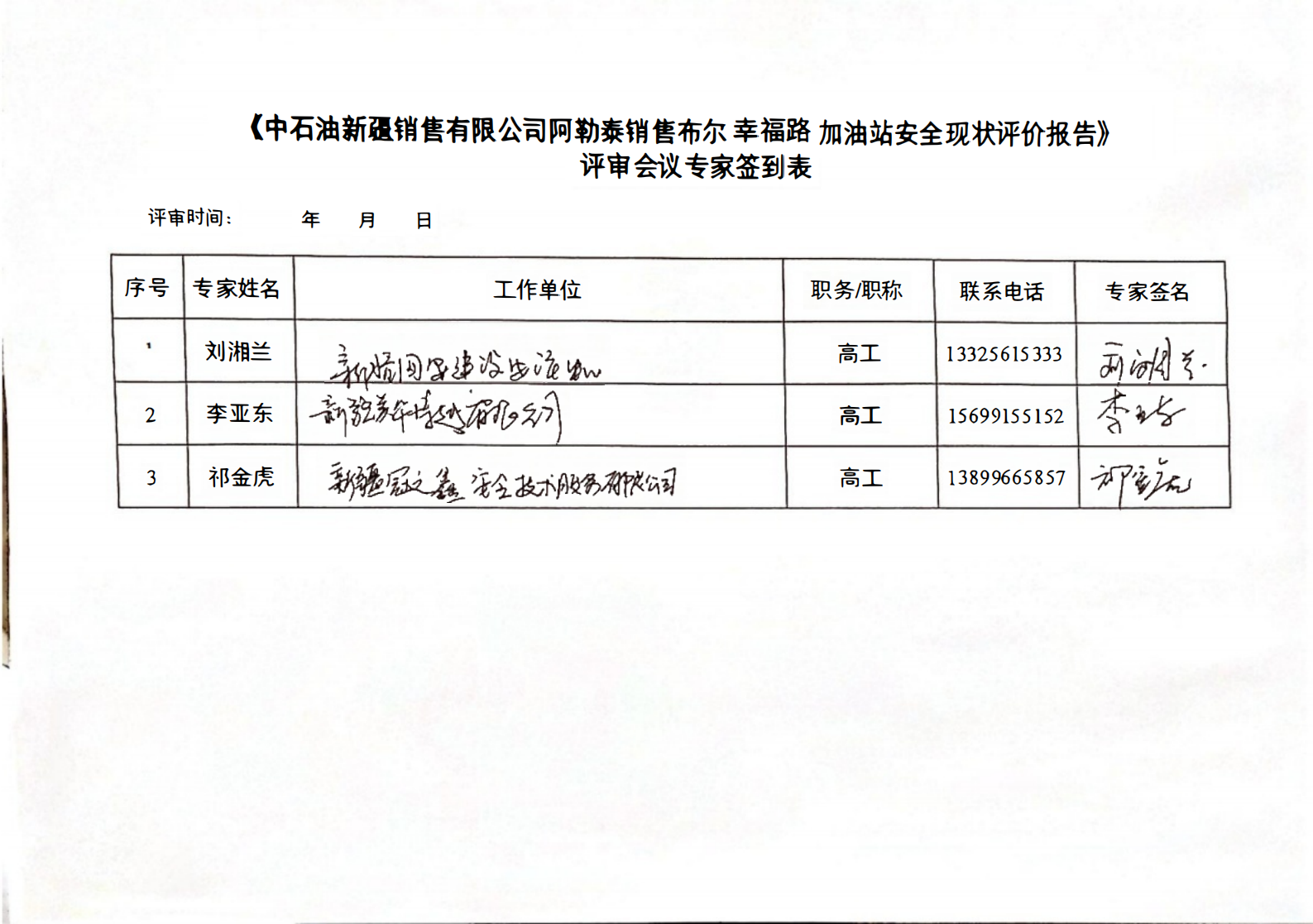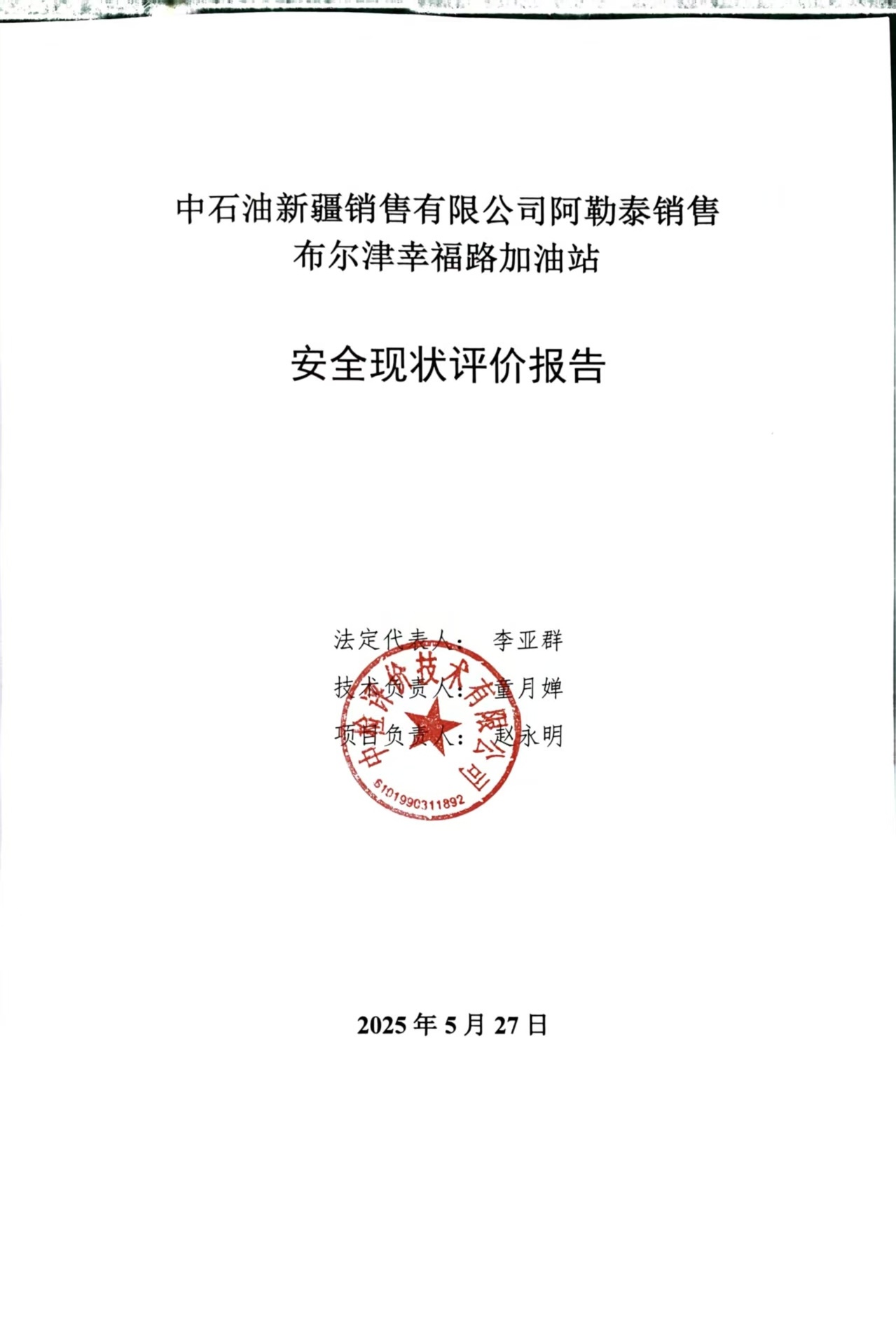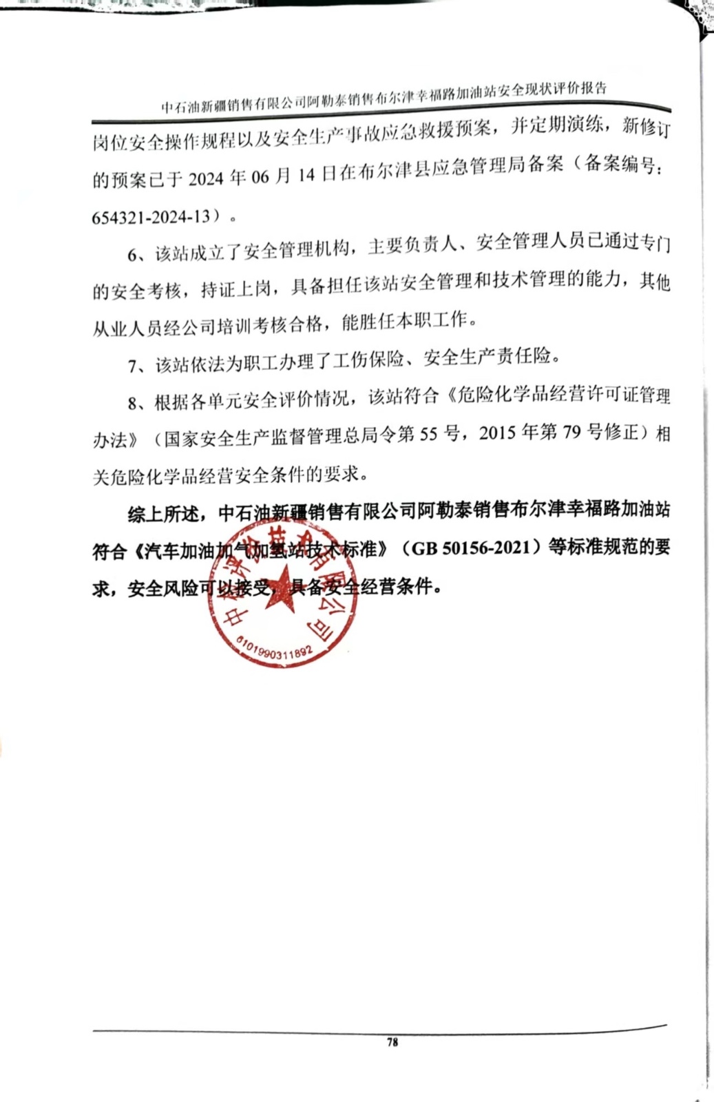 中石油新疆销售有限公司阿勒泰销售布尔津幸福路加油站安全现状评价报告