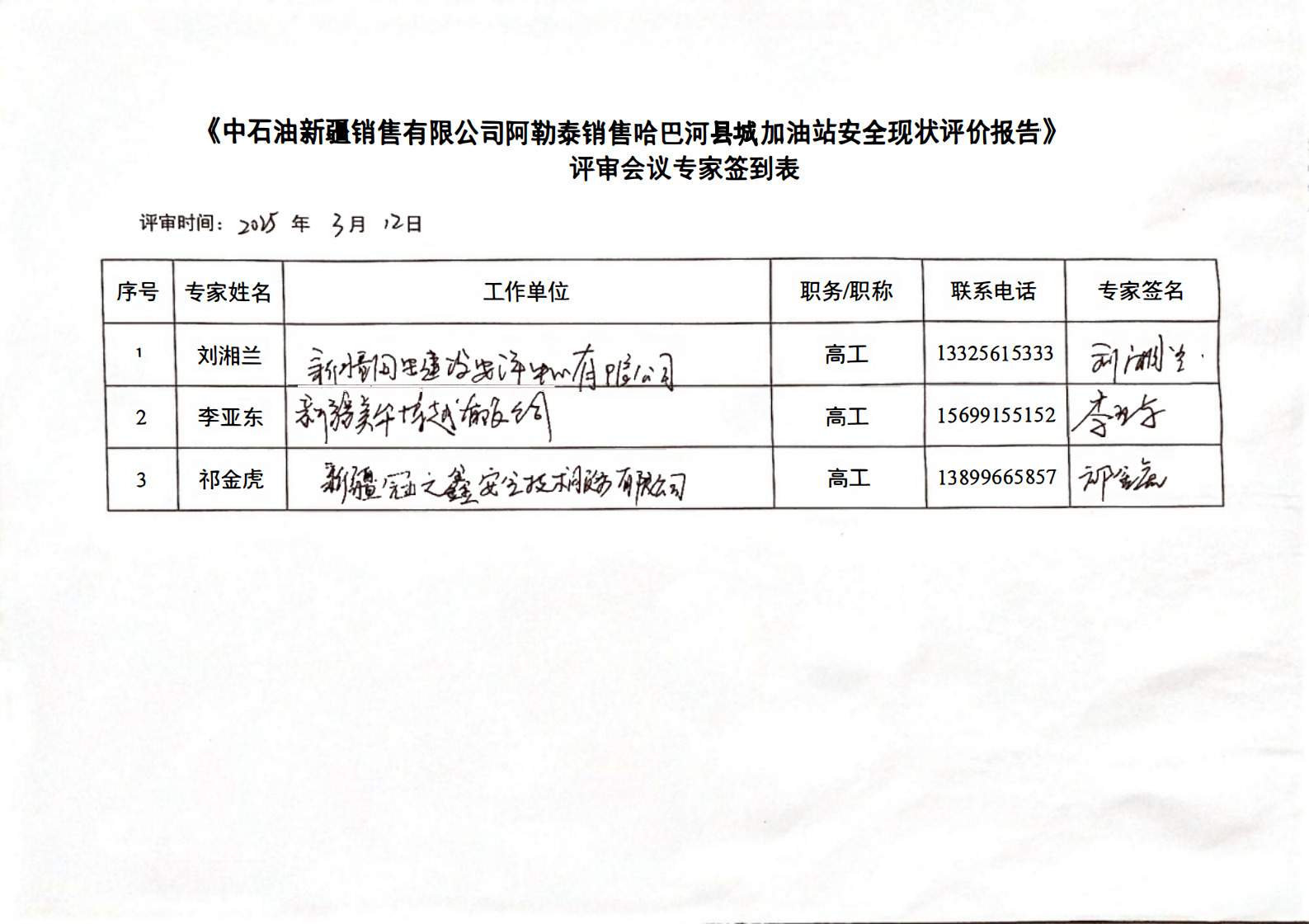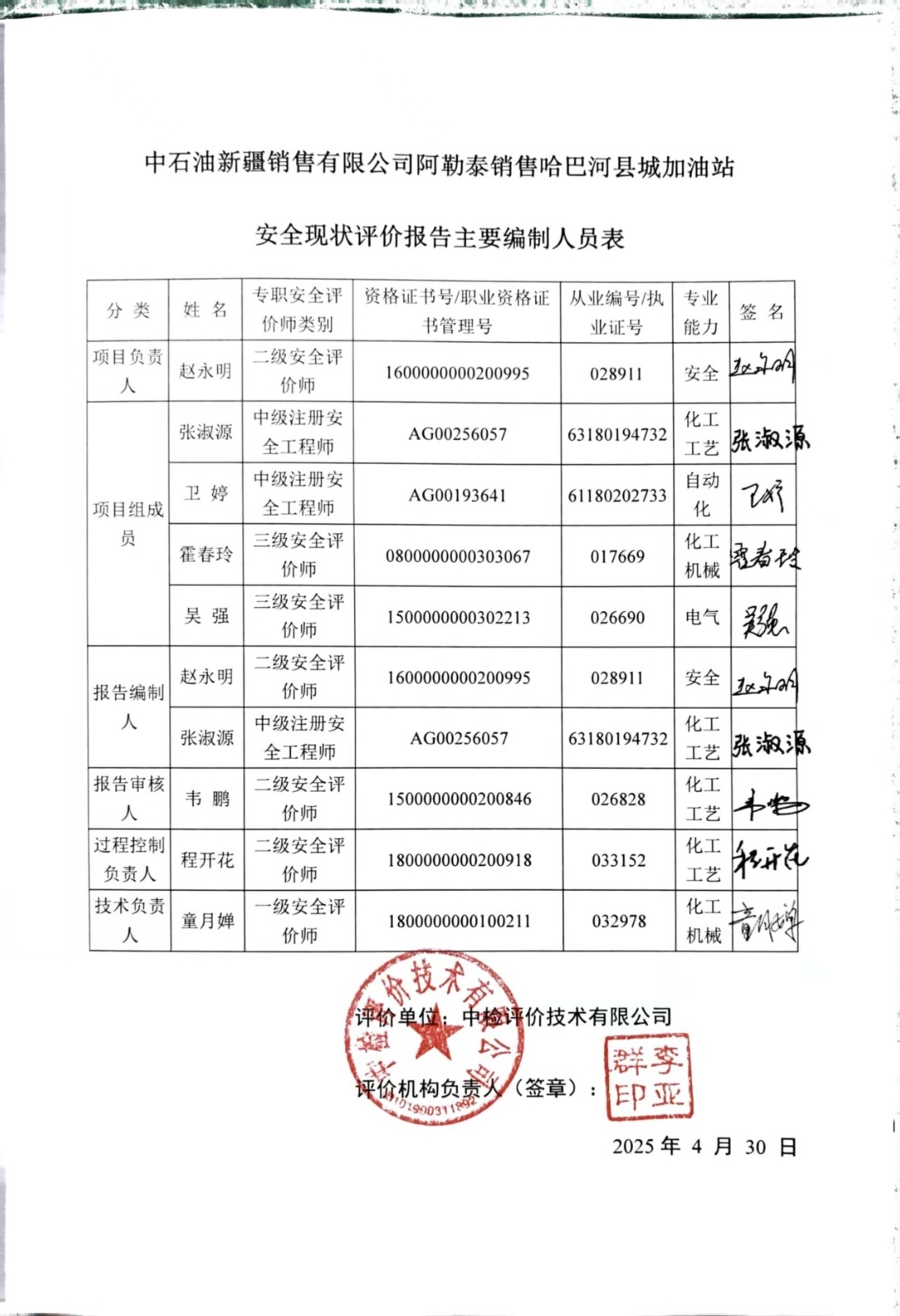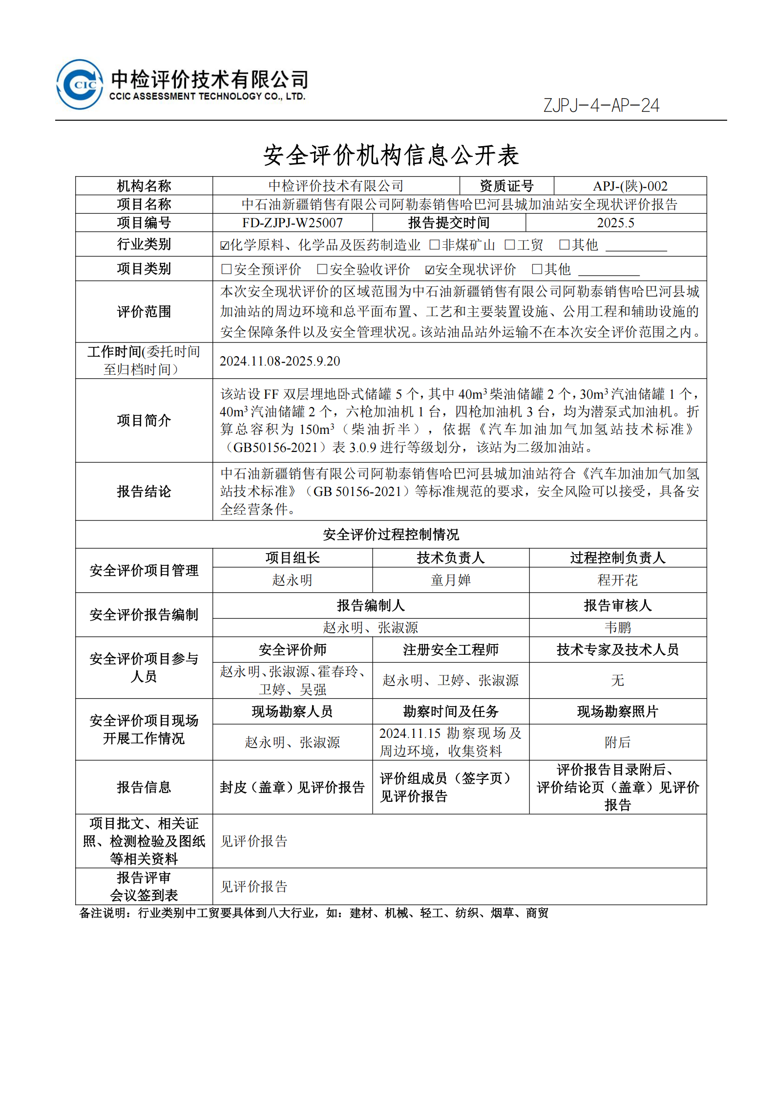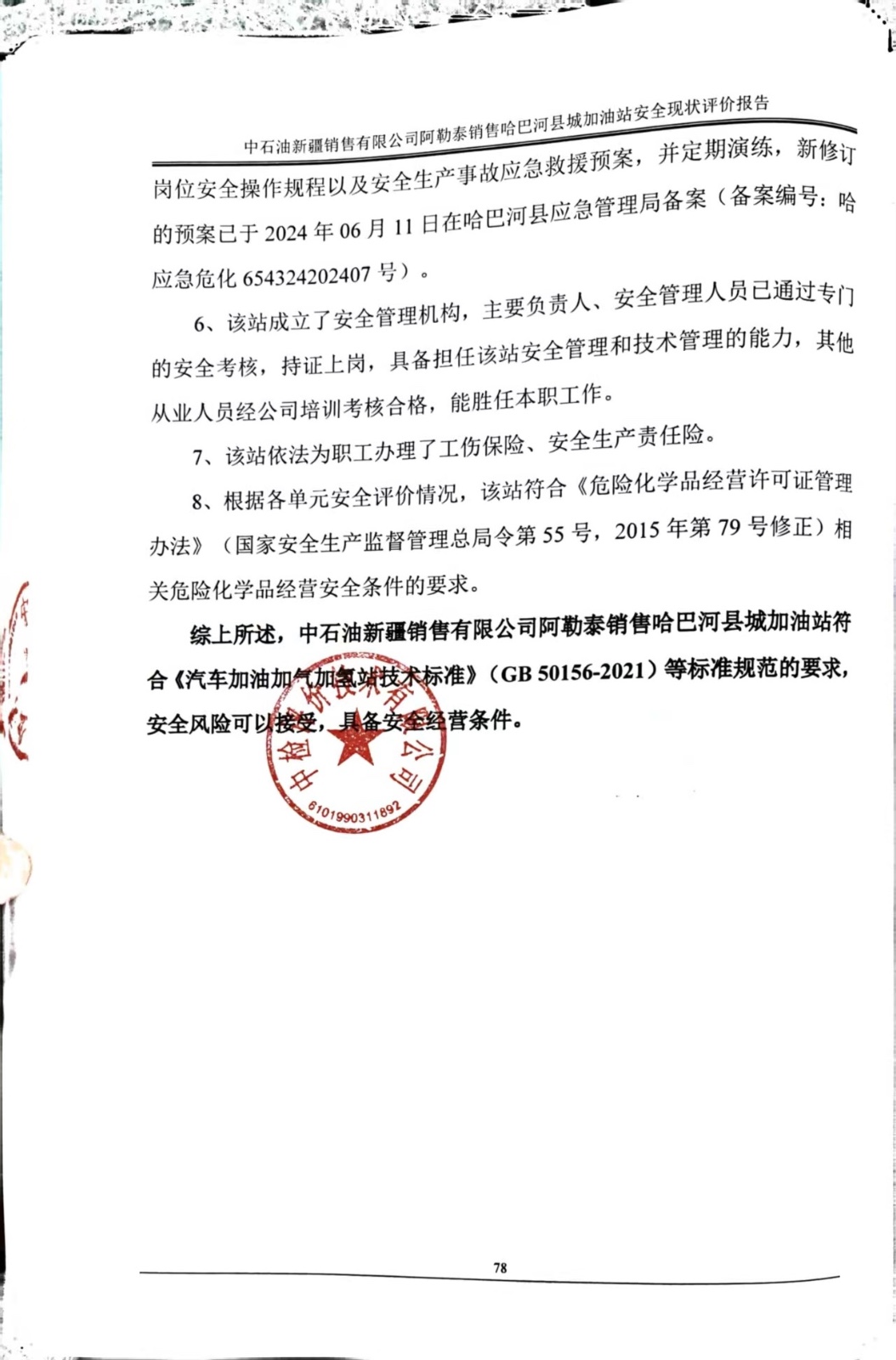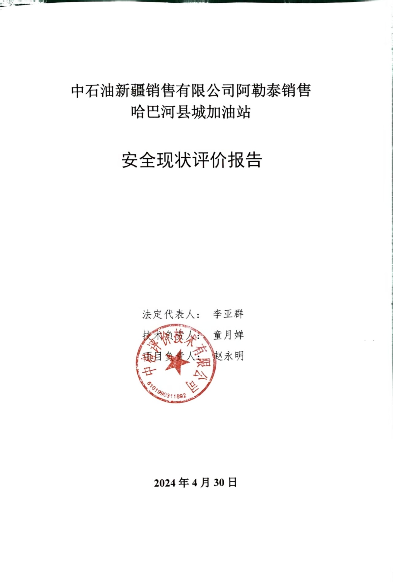 中石油新疆销售有限公司阿勒泰销售哈巴河县城加油站安全现状评价报告