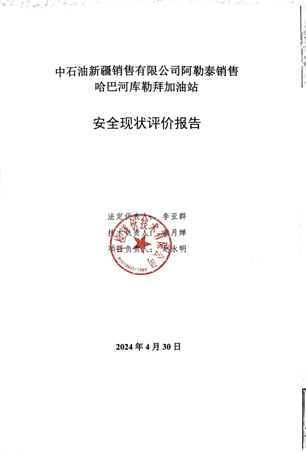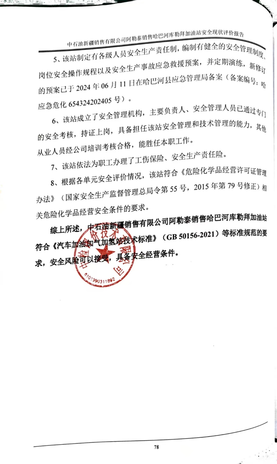 中石油新疆销售有限公司阿勒泰销售哈巴河库勒拜加油站安全现状评价报告