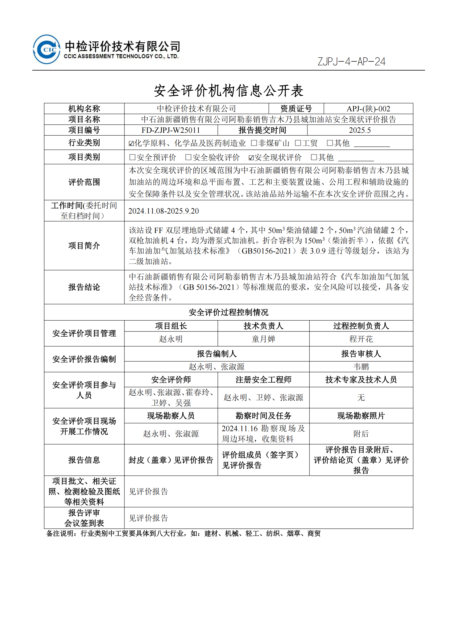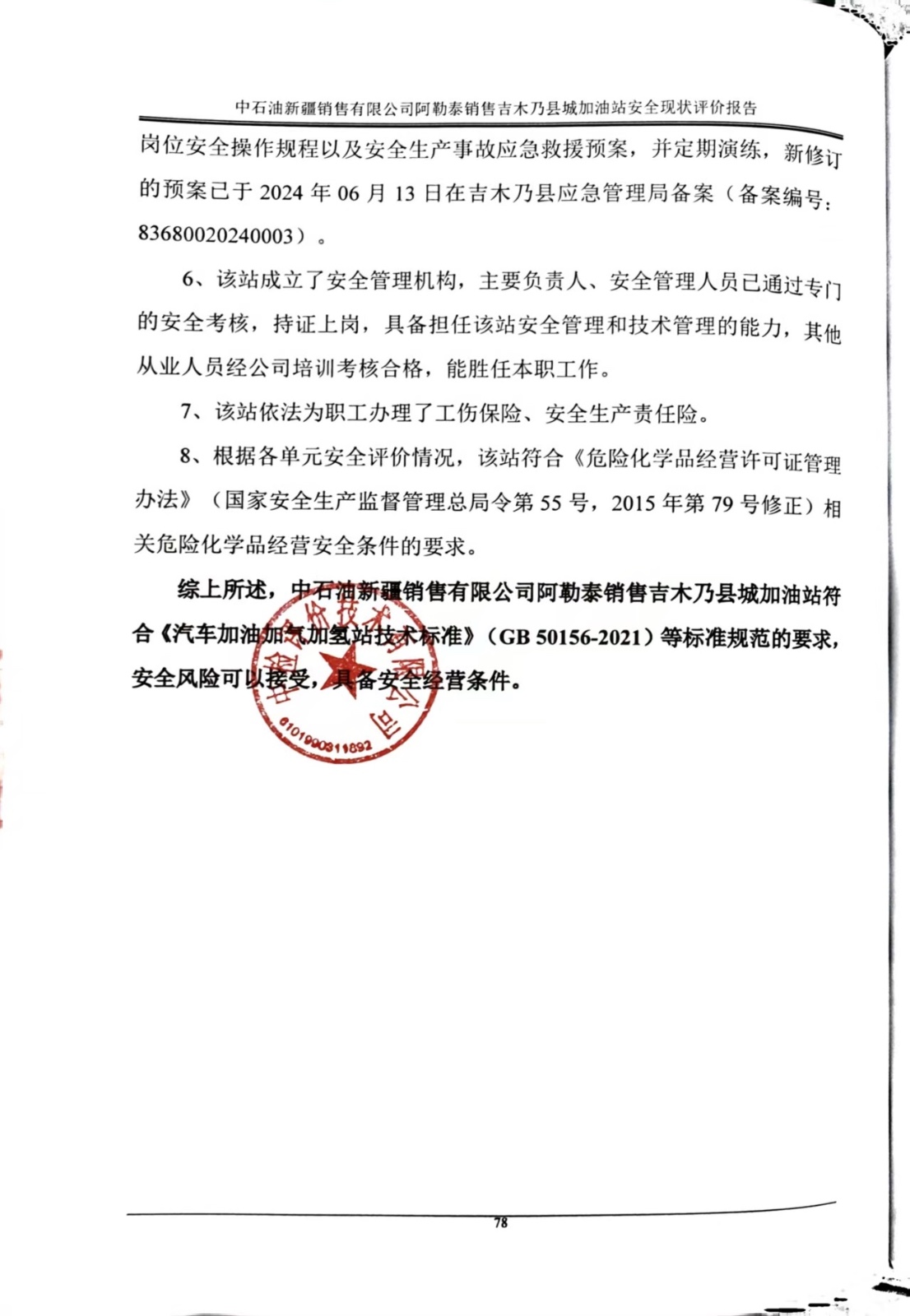 中石油新疆销售有限公司阿勒泰销售吉木乃县城加油站安全现状评价报告