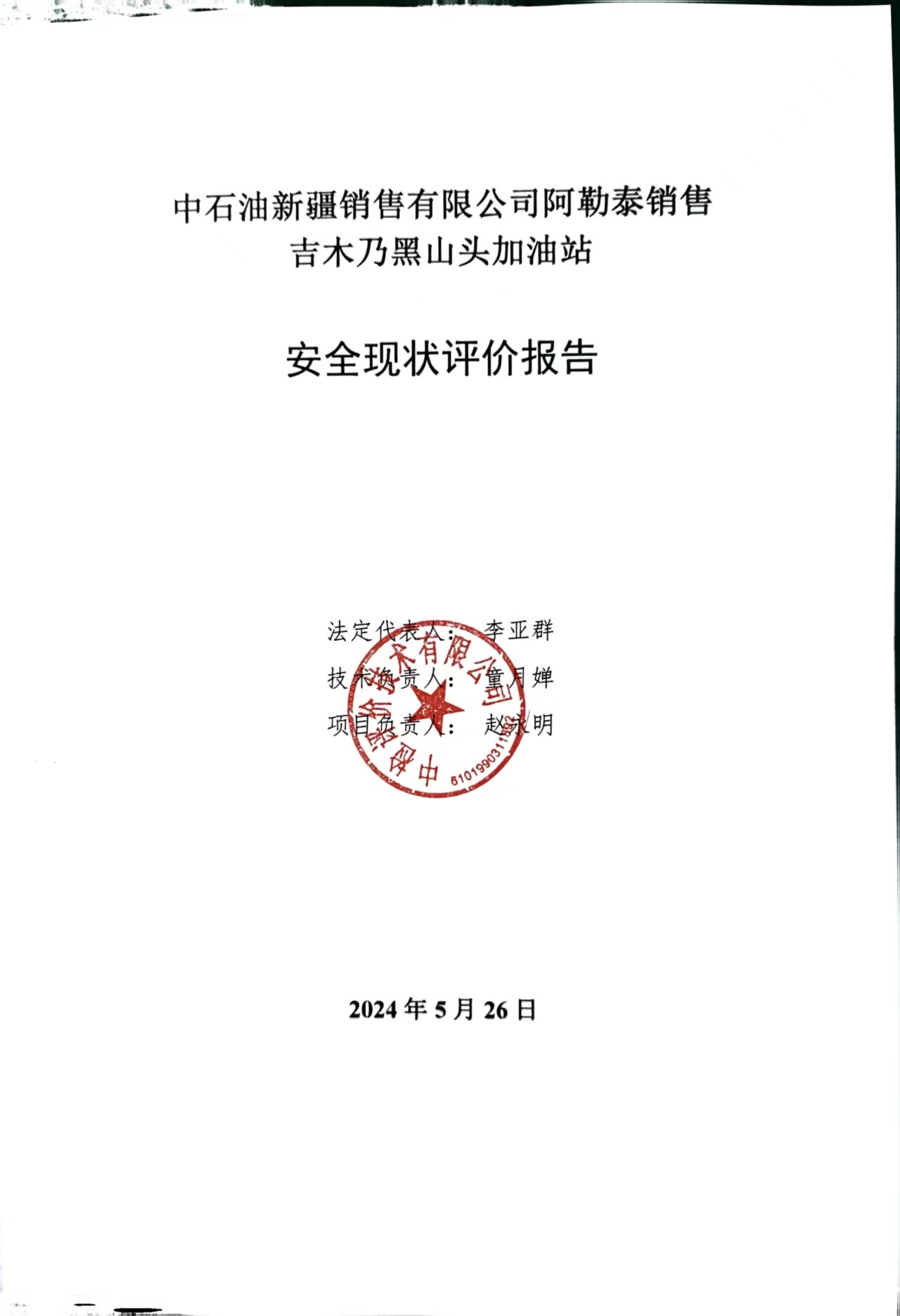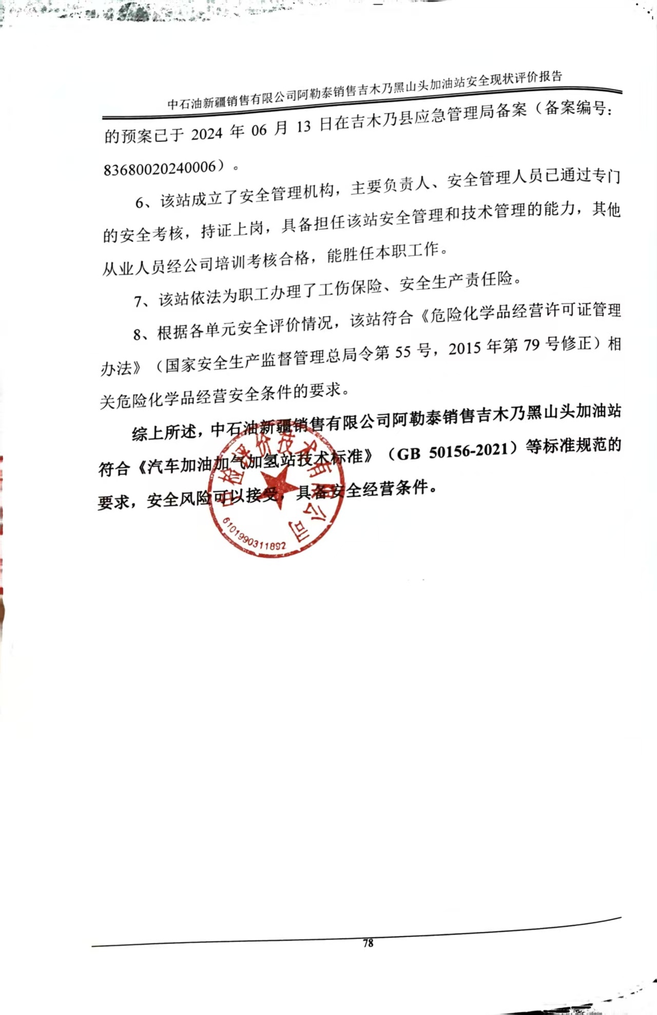 中石油新疆销售有限公司阿勒泰销售吉木乃黑山头加油站安全现状评价报告
