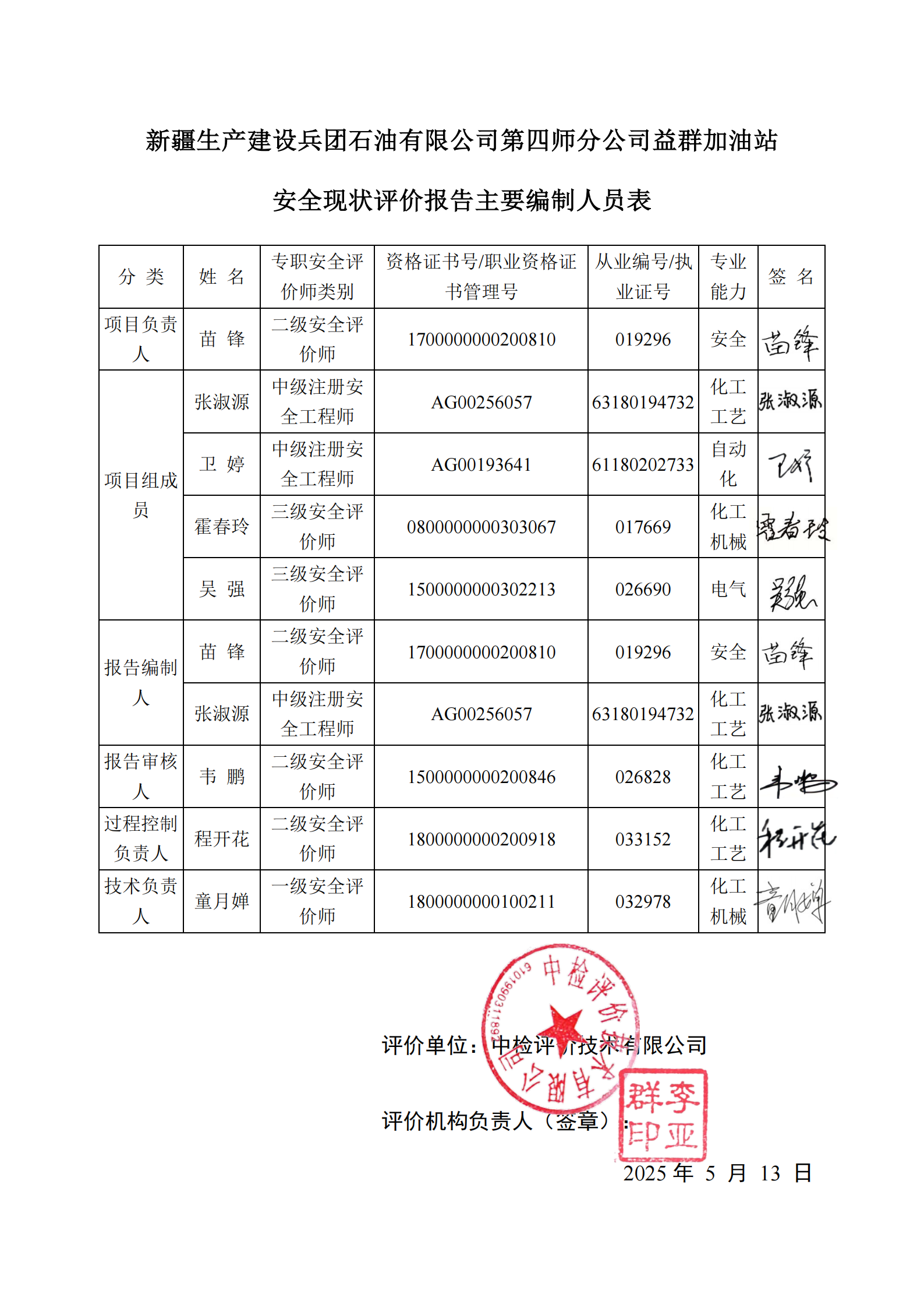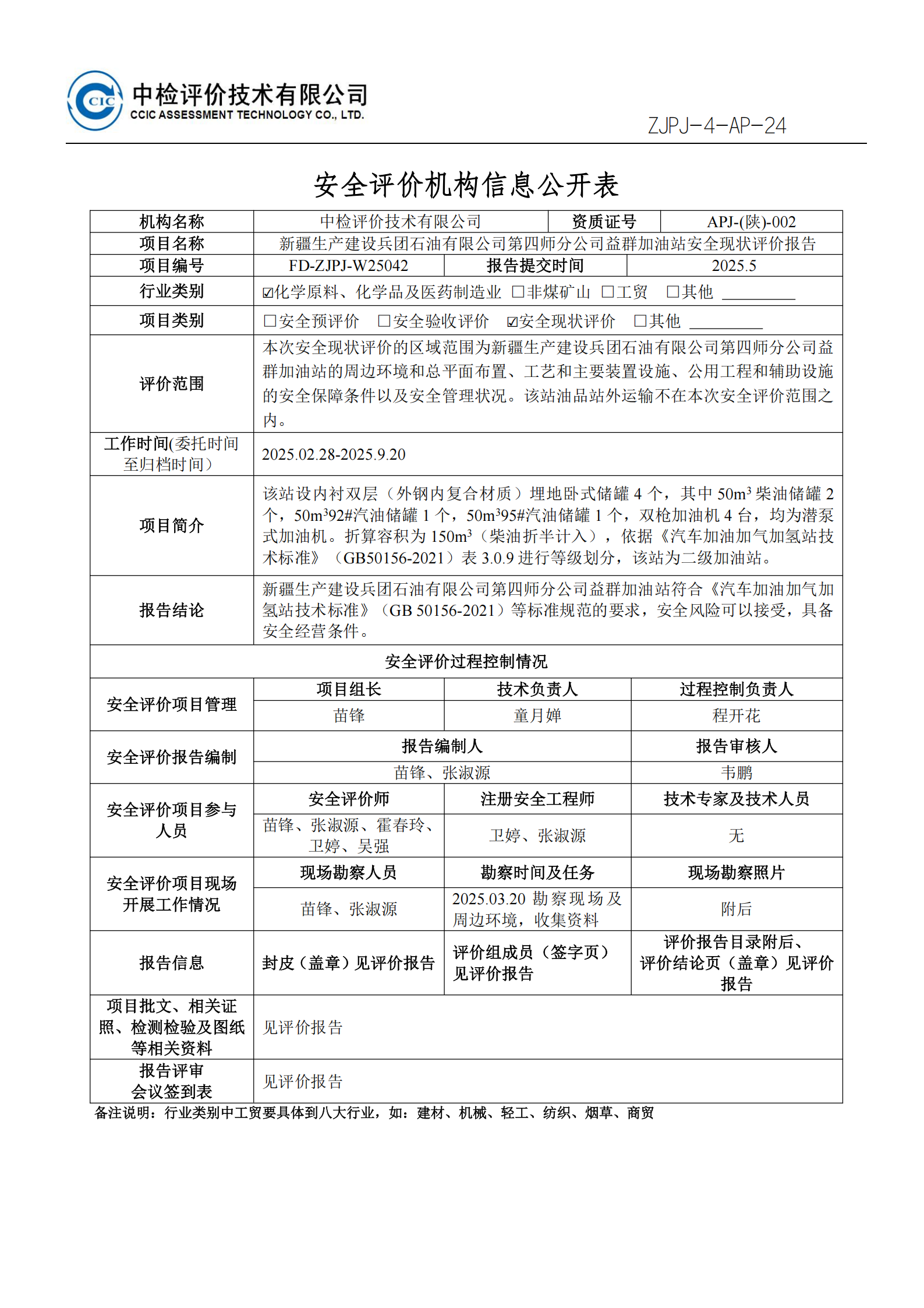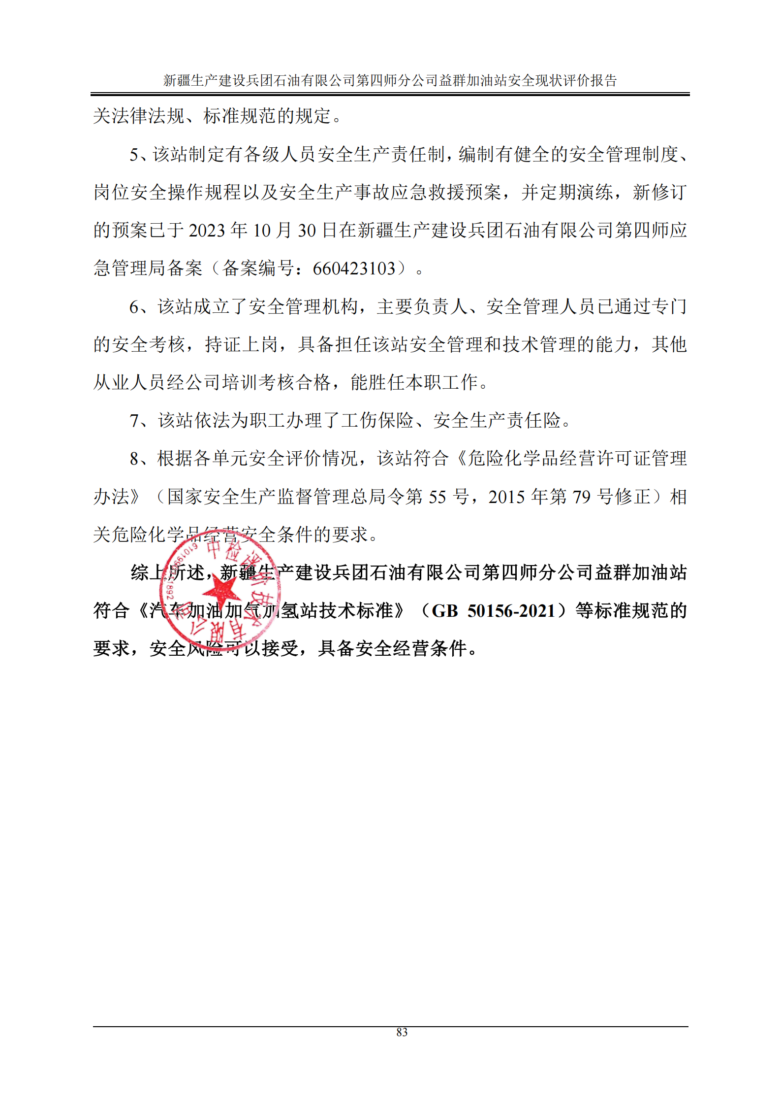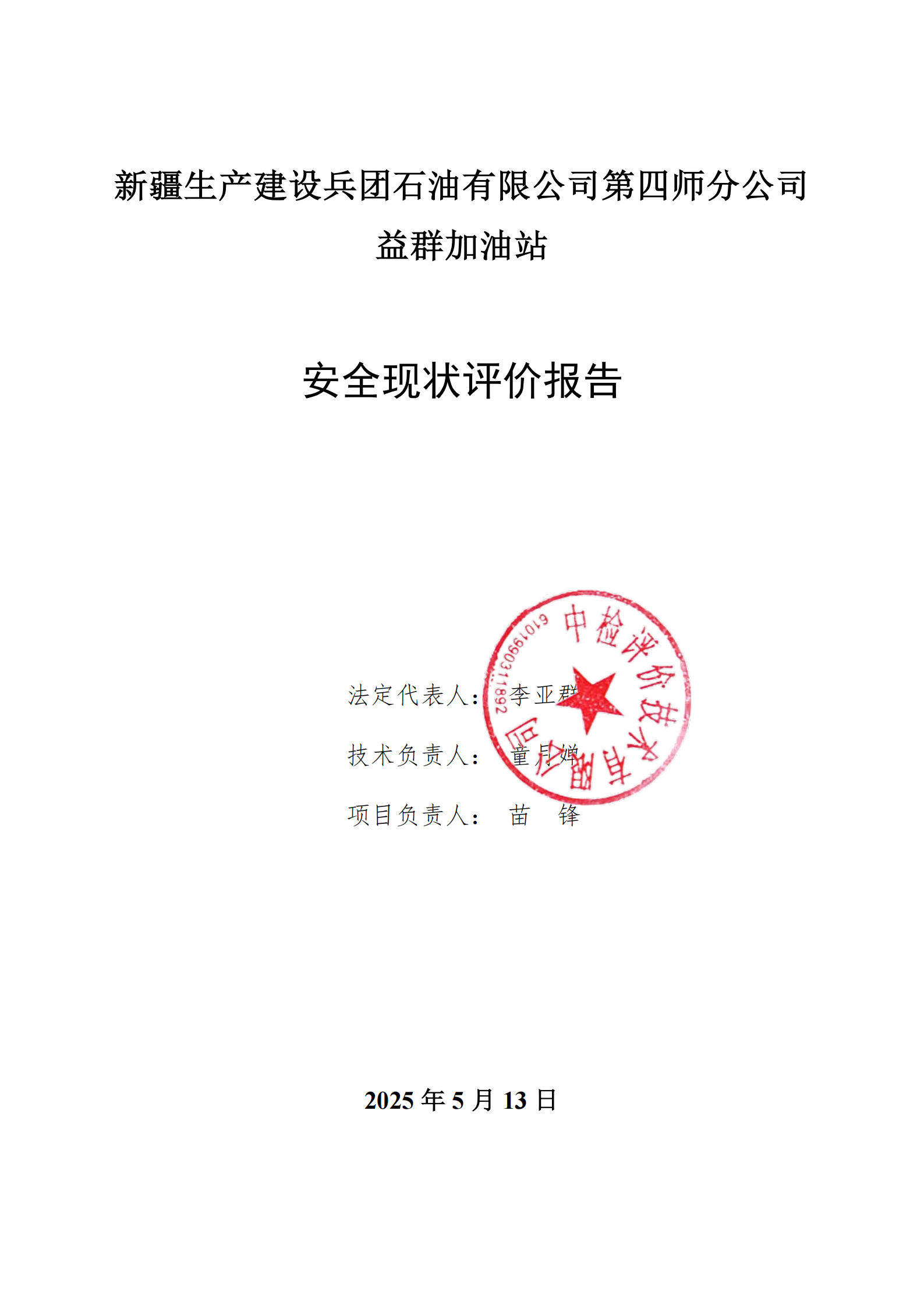 新疆生产建设兵团石油有限公司第四师分公司益群加油站安全现状评价报告