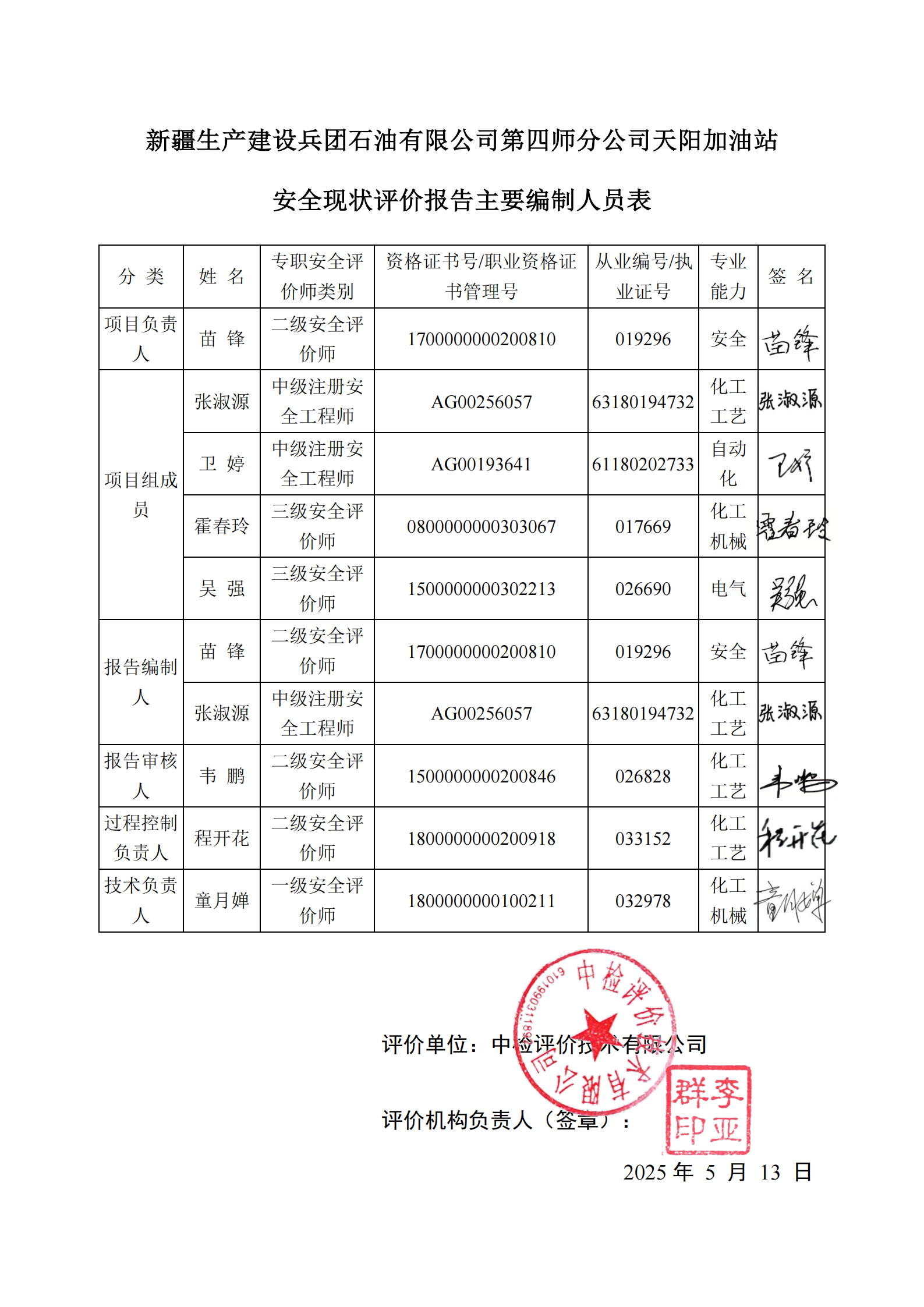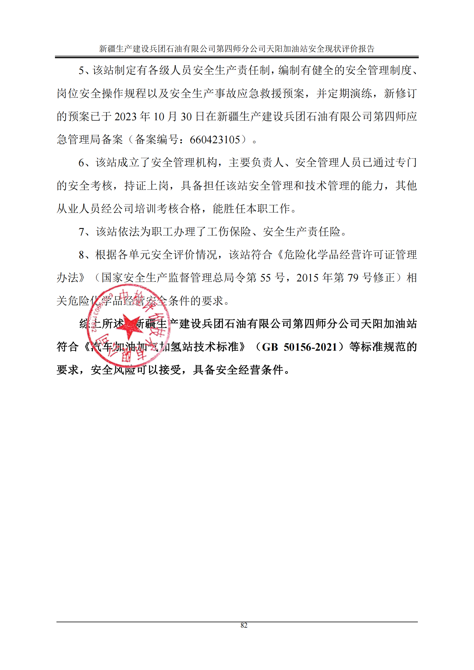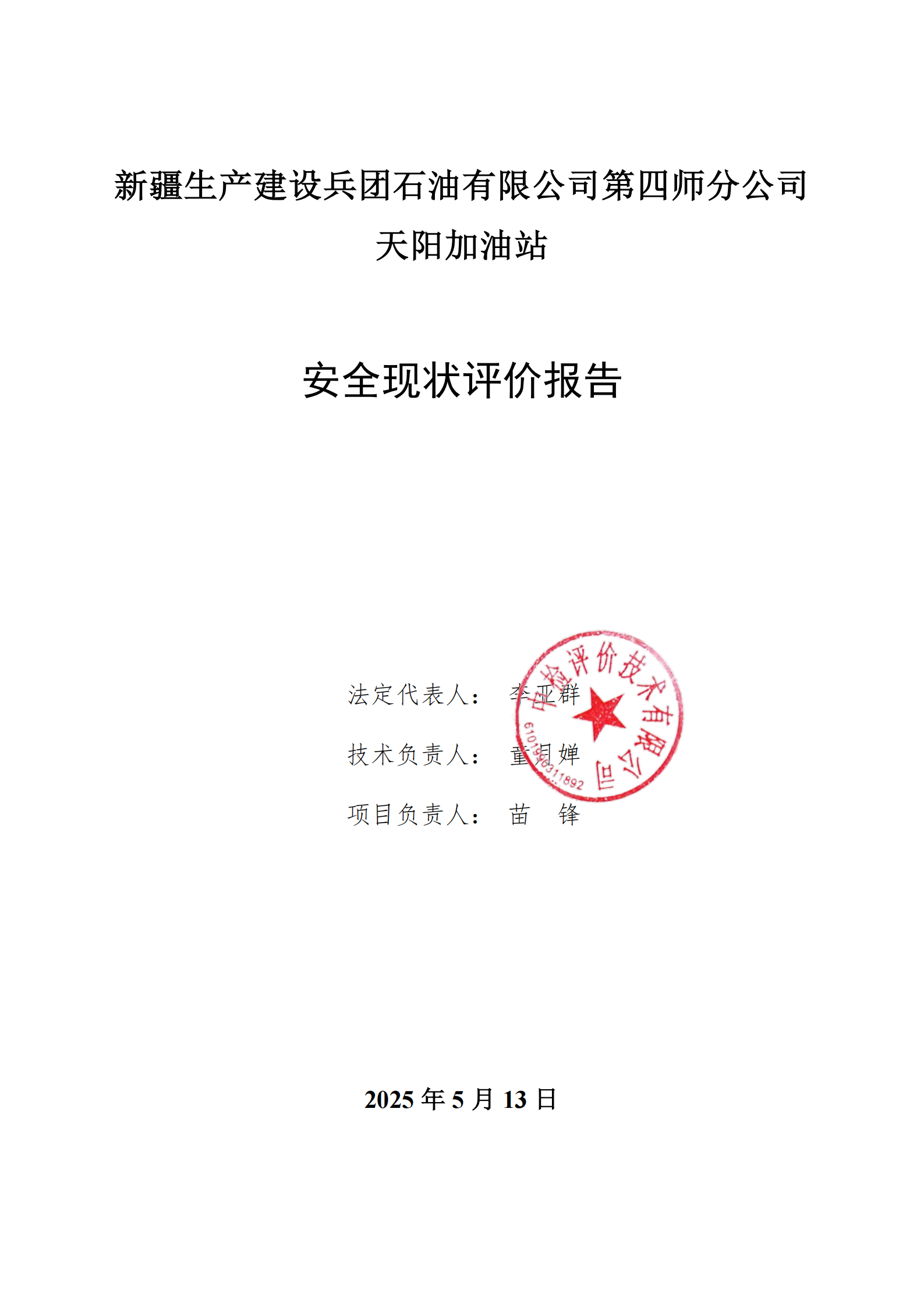 新疆生产建设兵团石油有限公司第四师分公司天阳加油站安全现状评价报告