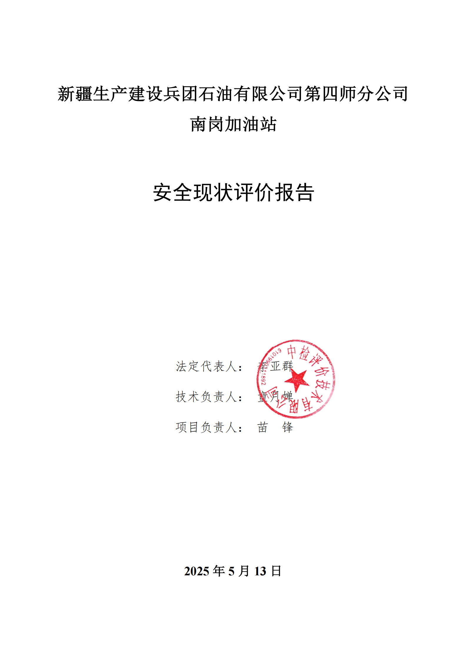 新疆生产建设兵团石油有限公司第四师分公司南岗加油站安全现状评价报告