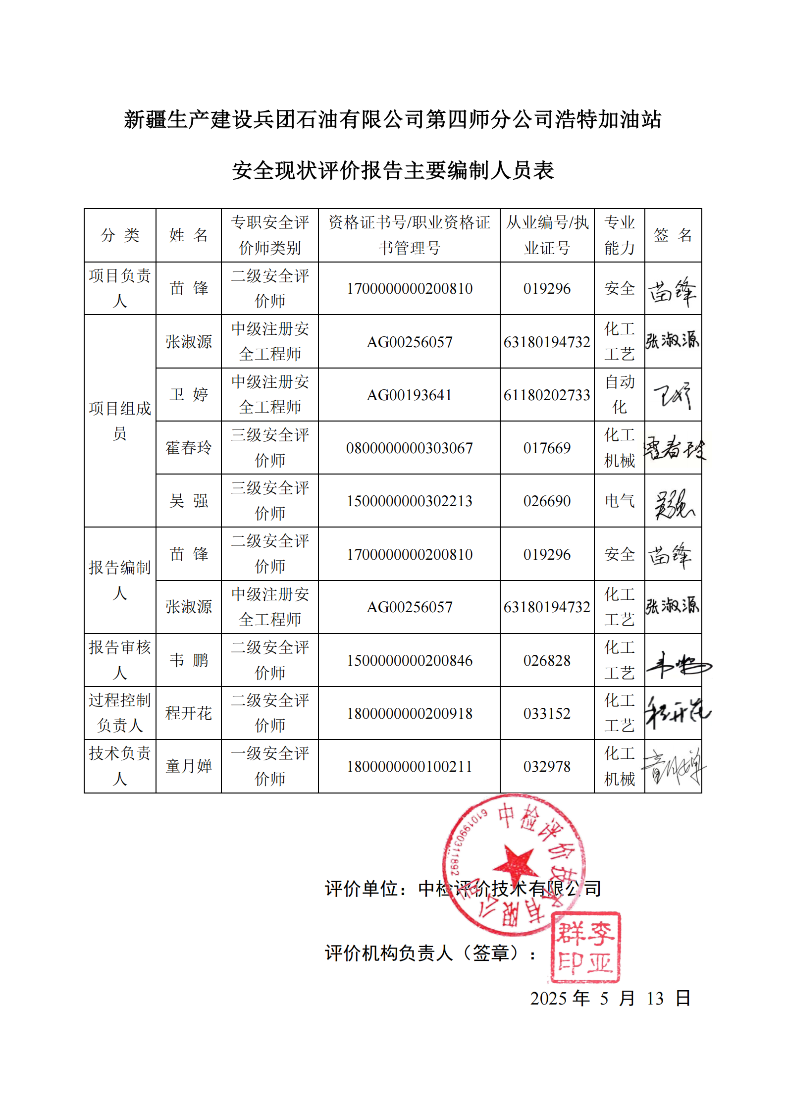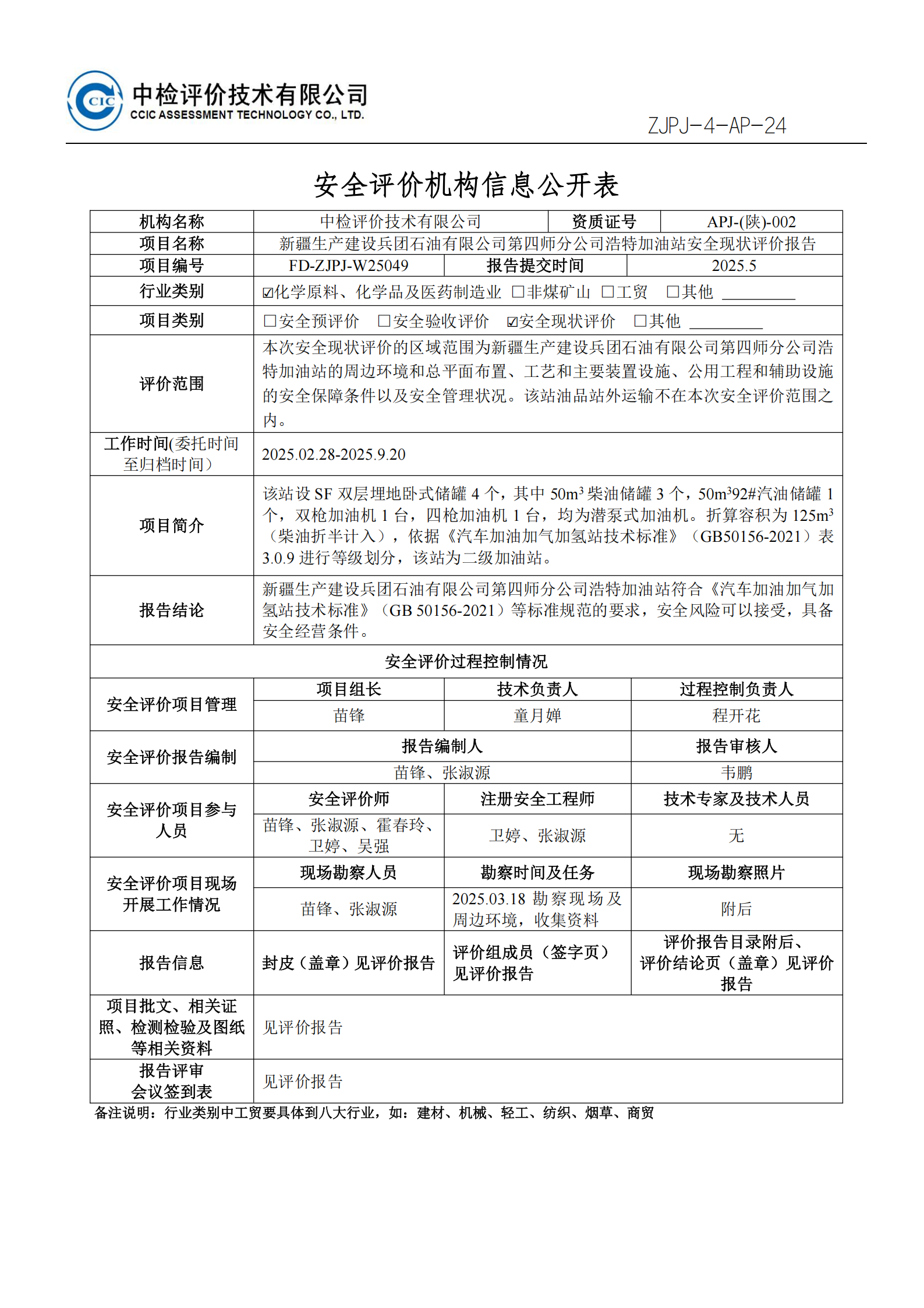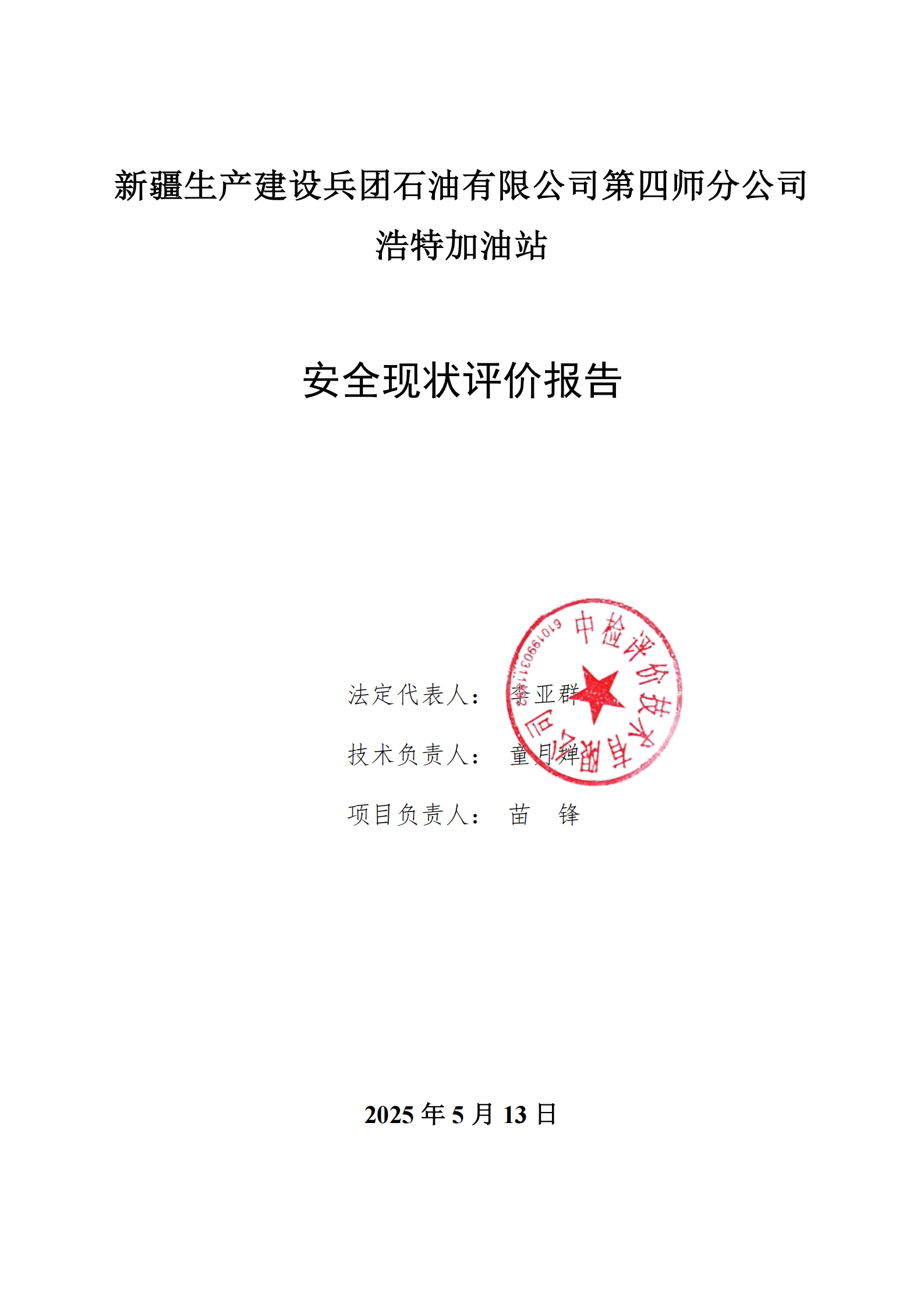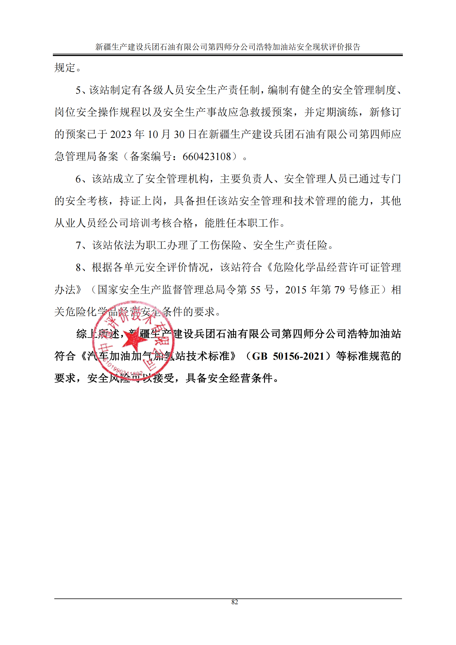 新疆生产建设兵团石油有限公司第四师分公司浩特加油站安全现状评价报告