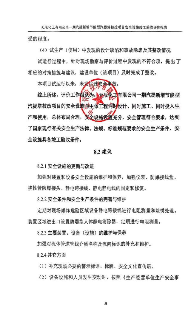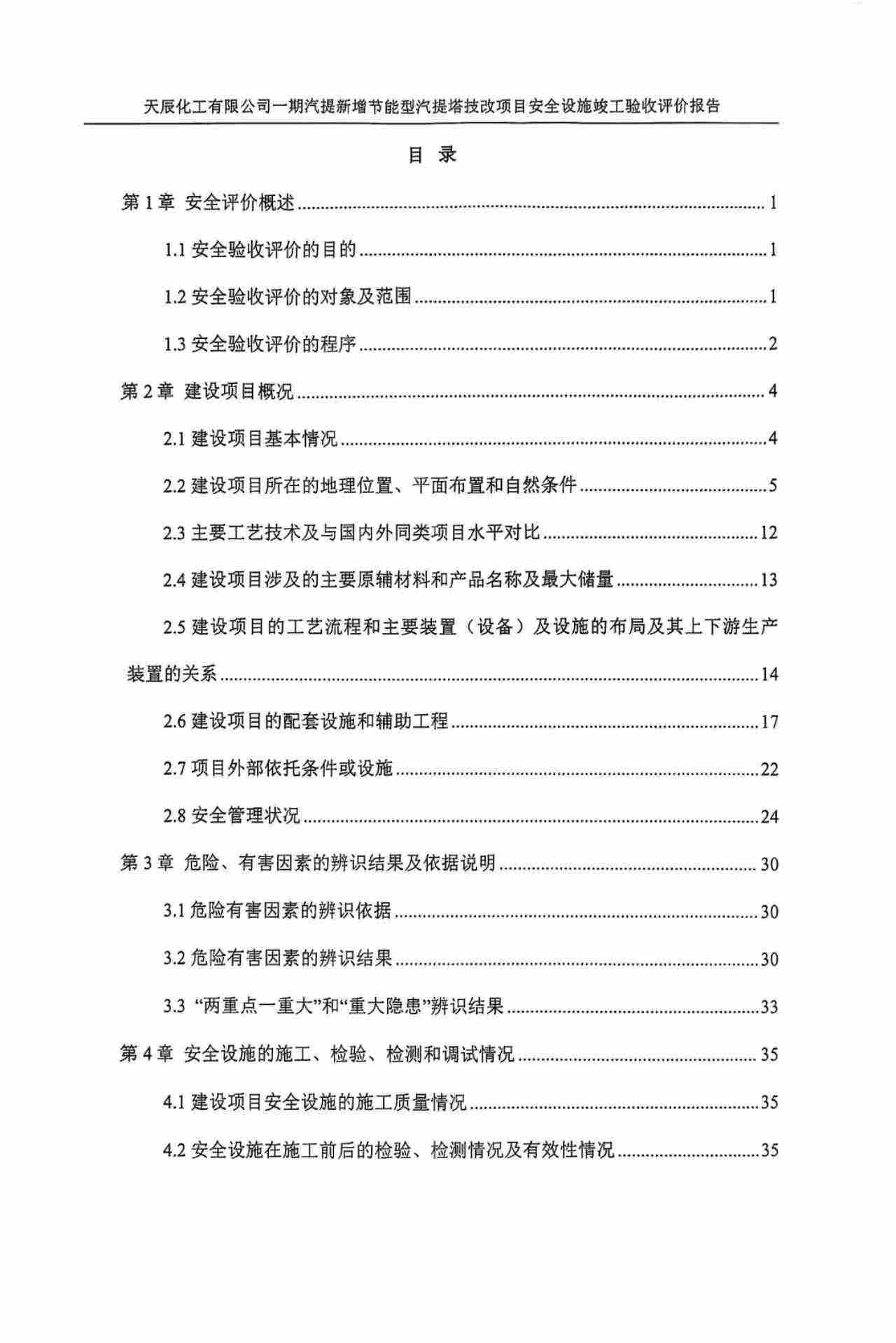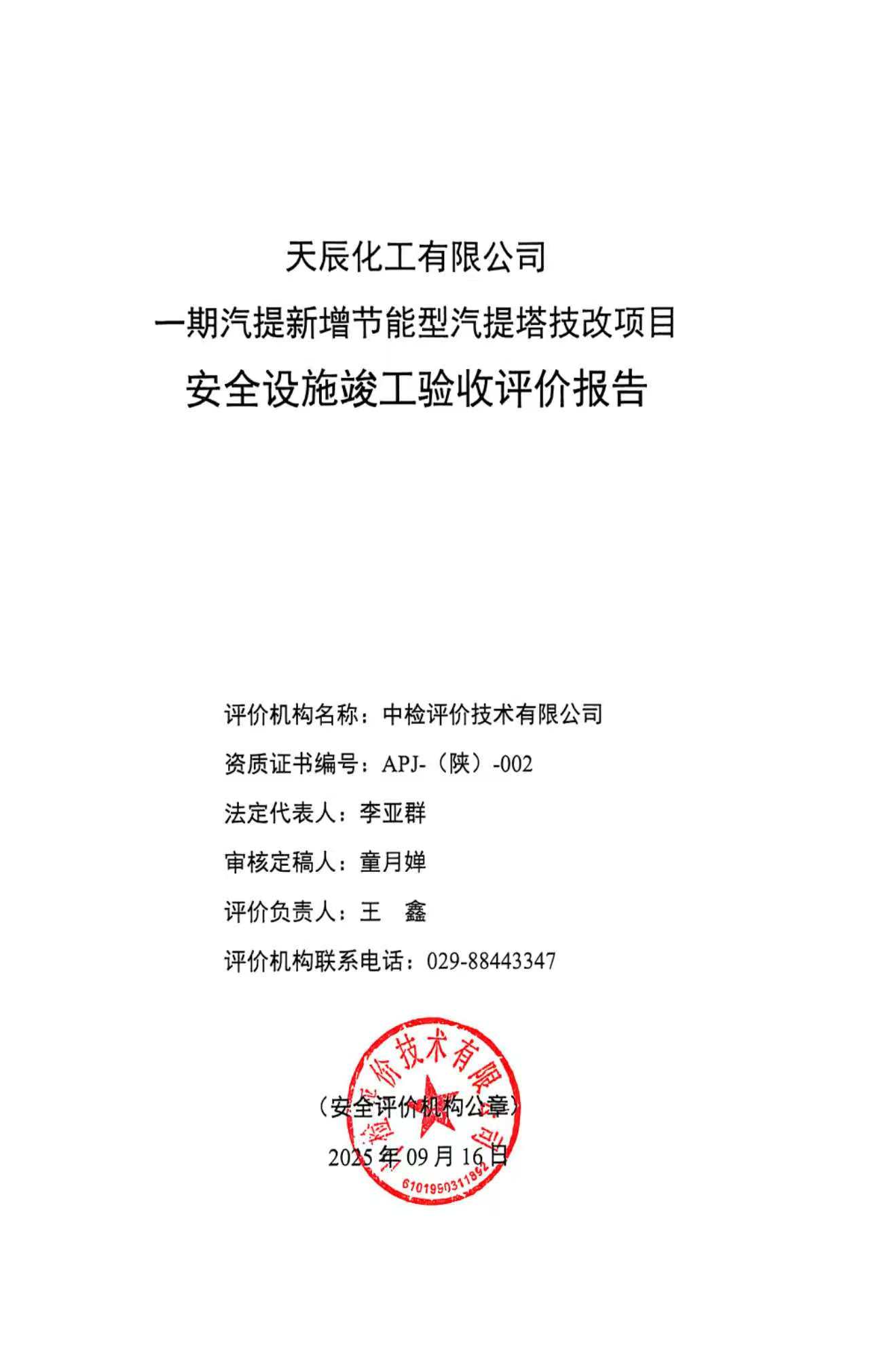 天辰化工有限公司一期汽提新增节能型汽提塔技改项目安全设施竣工验收评价报告