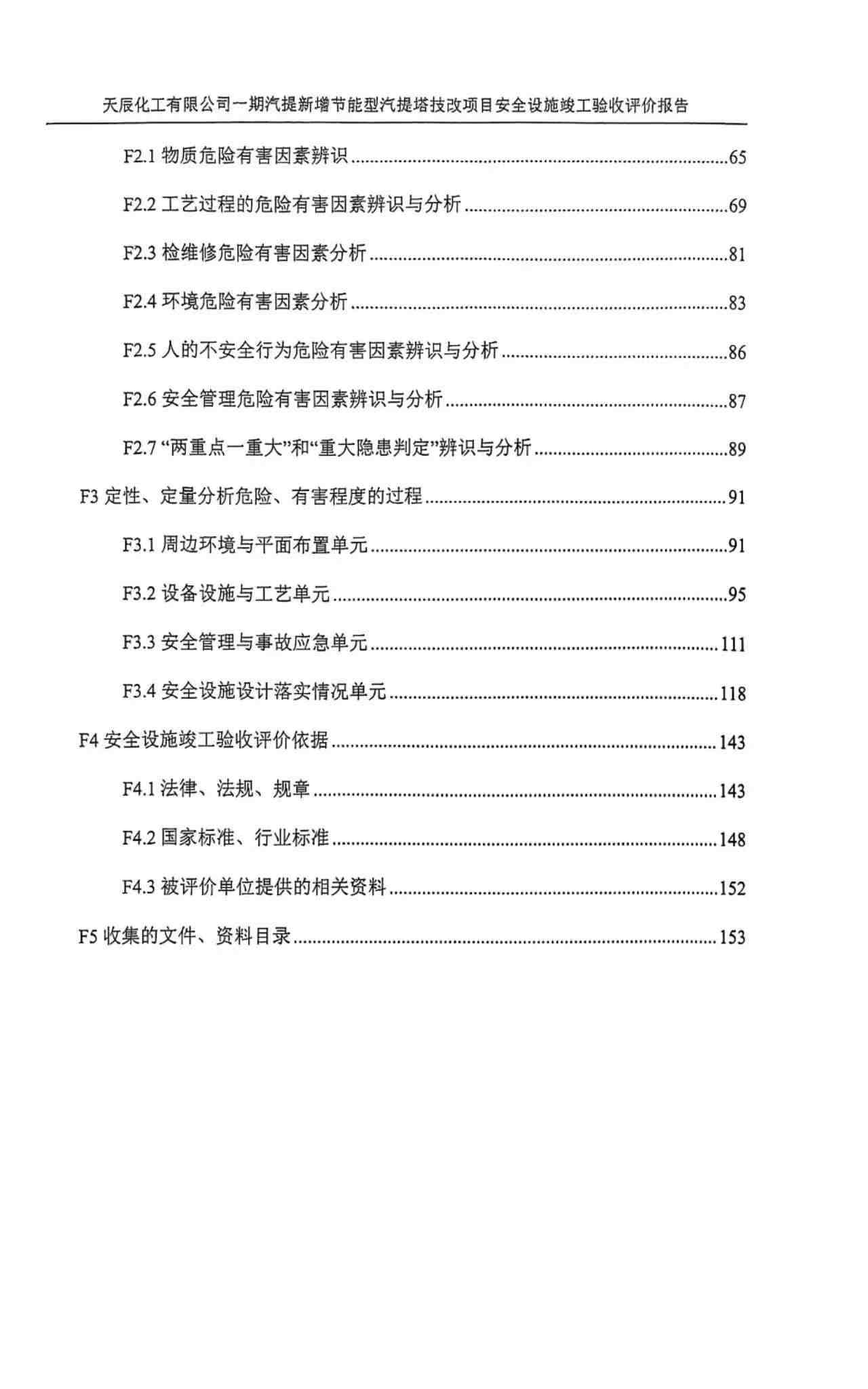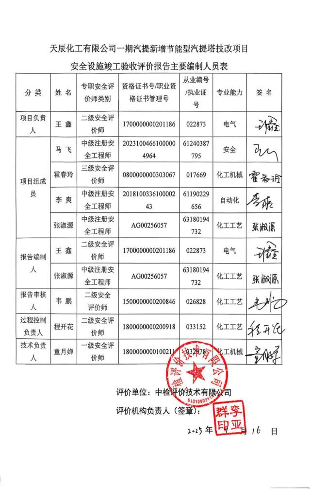 项目名称 | 天辰化工有限公司一期汽提新增节能型汽提塔技改项目安全设施竣工验收评价报告 | ||||||