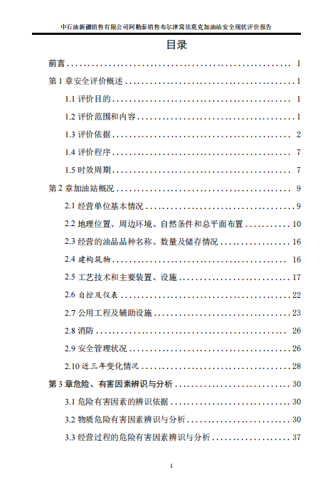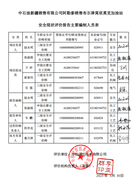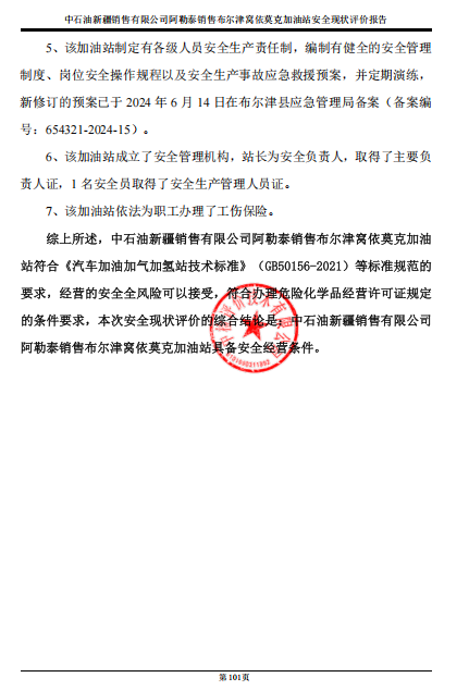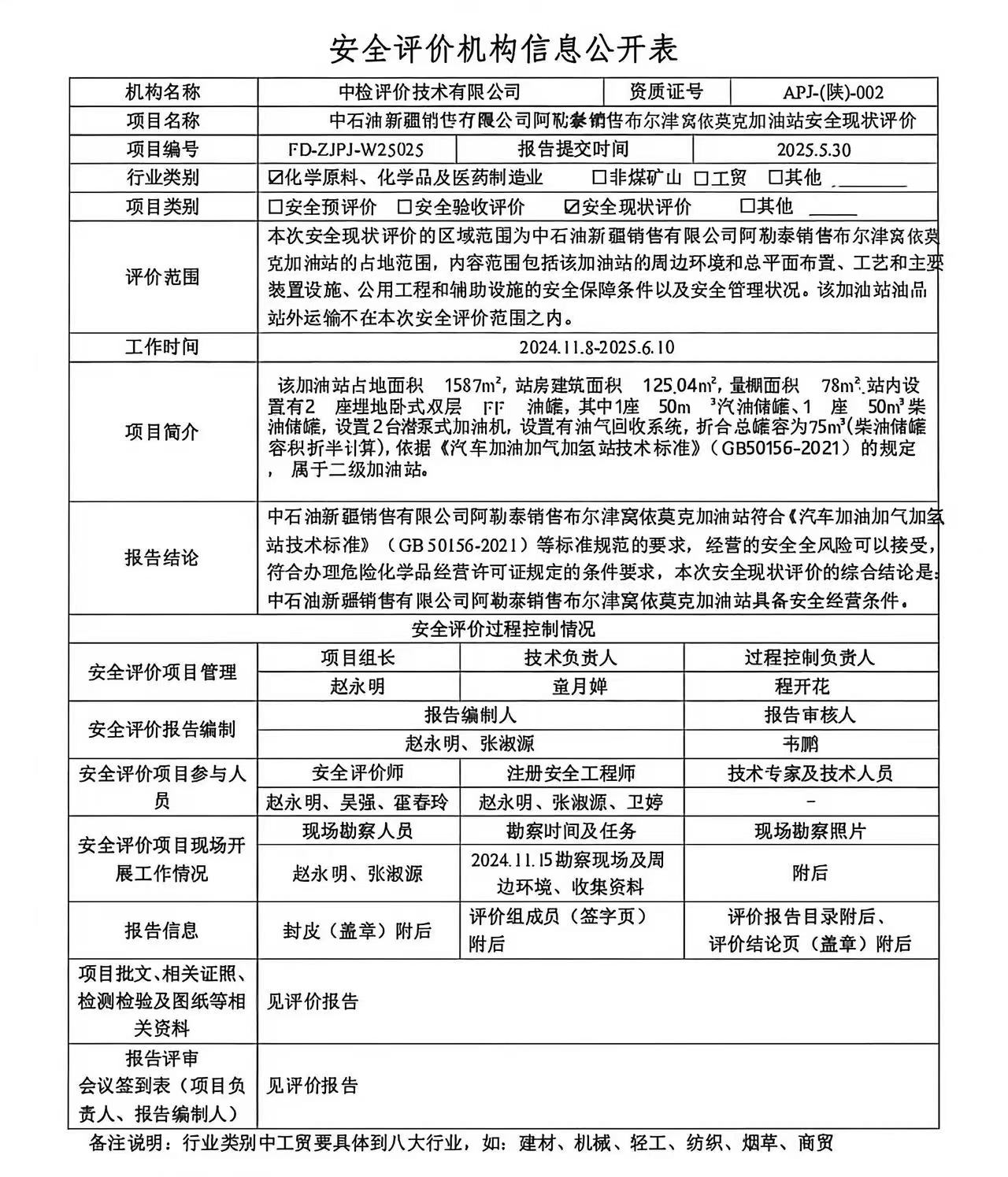 中石油新疆销售有限公司阿勒泰销售布尔津窝依莫克加油站安全现状评价报告